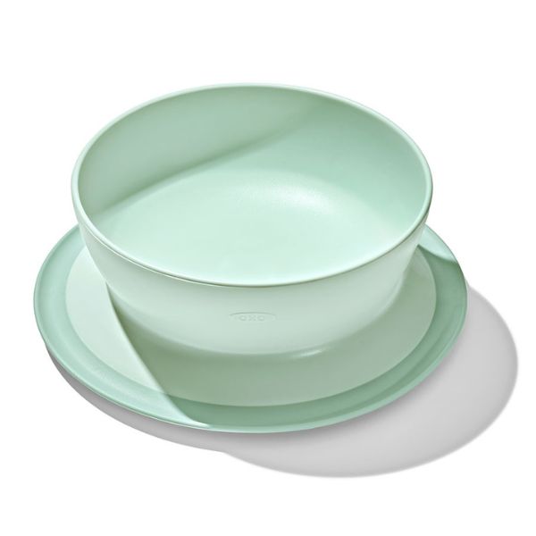 Cut down on mealtime mess with the OXO Tot Stick & Stay Suction Bowl. The Bowl features a suction base that sticks securely to surfaces until mealtime is over, preventing sliding, slipping and tipping. The parent-friendly opening makes removing the Bowl simple for adults, but tough for tots. Tall walls allow for easy scooping and encourage self-feeding. Twist the Bowl and base apart for quick cleaning in the dishwasher.