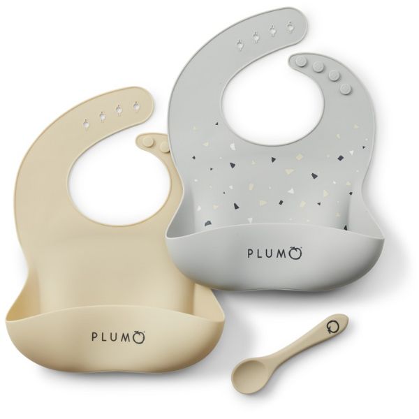 PLUM Silicone Bibs and Spoon Set 3pc Ash/Sand