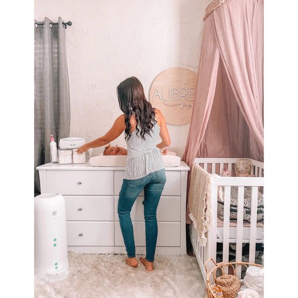 - Warm glow night light for nighttime diaper changes