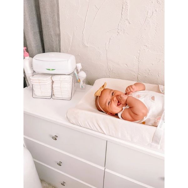 - Warm glow night light for nighttime diaper changes