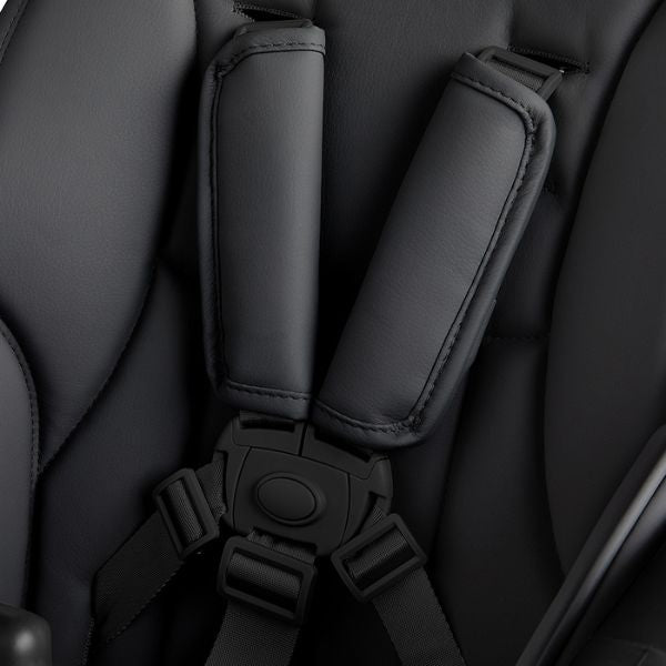 Inspired by contemporary kitchen interiors, the Gourmet highchair is designed to elevate and accessorise every modern home. The minimalistic black frame with matte black vegan leather seat and harness fabric is smart and sophisticated, with the subtle shimmer tray complementing the look perfectly.