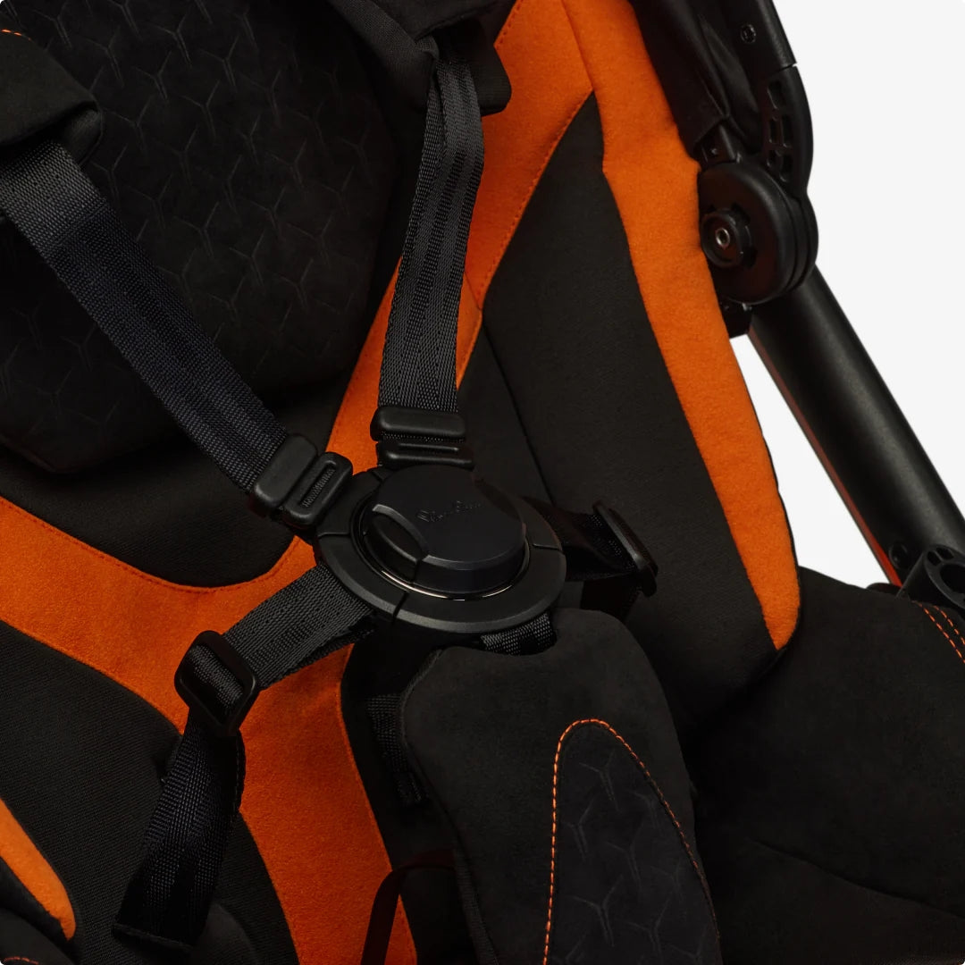 A design with strong personality, Reef AL Arancio incorporates automotive-inspired materials at every touchpoint – high performance suede, Italian leather details and a high gloss polycarbonate carrycot with integrated mesh for ultimate performance.