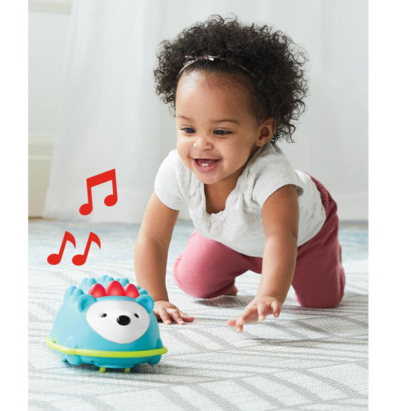 Encourage baby’s first crawling adventures with Skip Hop's cute hedgehog friend! Designed to grow with your little one in two stages of play, the interactive crawl toy challenges baby to learn to crawl with engaging lights, fun sounds and energetic tunes.