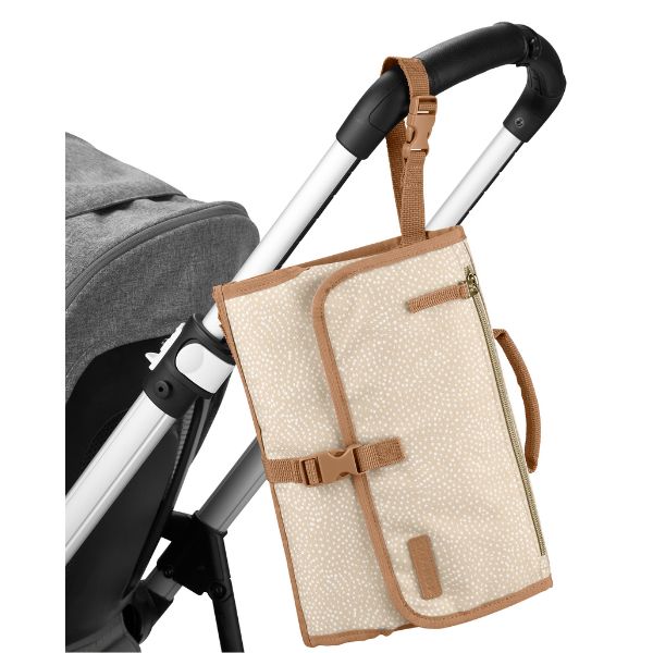 The ultimate nappy changing tool makes baby changing easy—no matter where you are. The ultra-convenient clutch features a wipe-clean, zip-off changing pad and translucent wipes case for timely refills. The large mesh pocket holds up to four nappies plus creams and other essentials, while the front zippered pocket is perfect for keys, cell phone or other personal items. Simply drop the Pronto in your bag, strap it to your wrist or clip it to your stroller and go!
