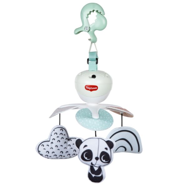 The Tiny Love Black and White Décor 3 in 1 Take along Mobile has over 30 minutes of continuous music with 5 different melodies, this will keep baby engaged and entertained at home and on-the-go.