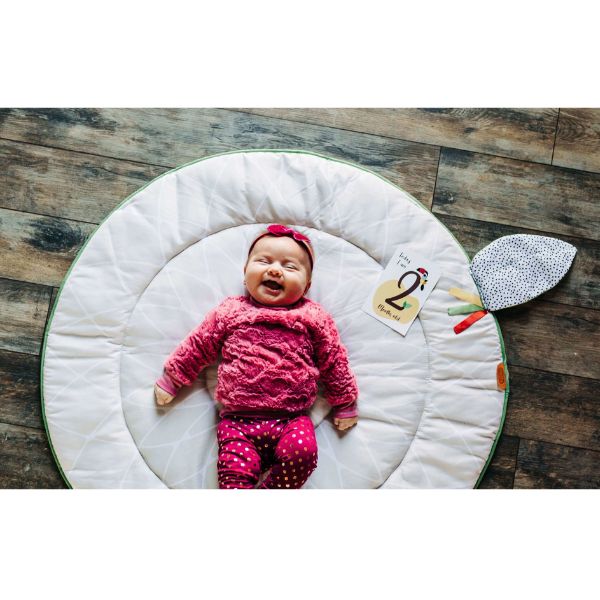 - Large round mat, premium fabrics, double padded extra soft to keep baby protected on hard floors