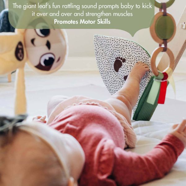 What sets this Gymini apart is its stand-alone, natural wooden arch. Even when your baby reaches the sitting stage, they'll still be entertained! Plus, it comes with a super cute plush koala hug-doll, a musical sloth doll that responds to your baby's touch, a big rattling kicker leaf, and three gripping rings made from natural wood.