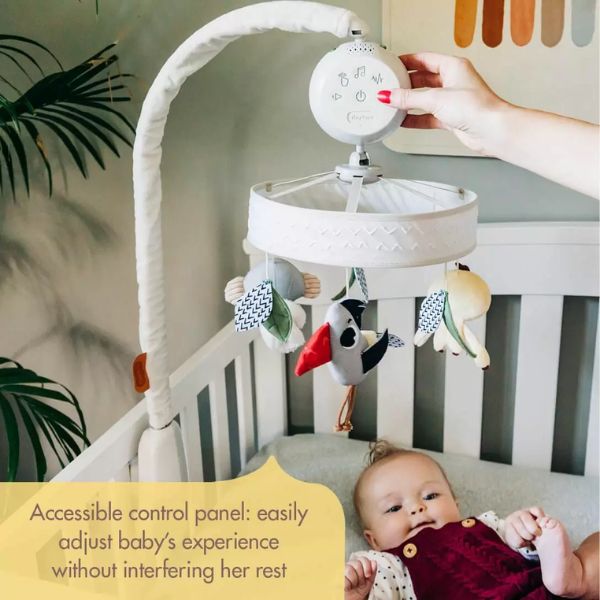 Prepare to be amazed by its rich variety of electronic features! With a unique shushing sound that works like magic to send babies into dreamland, nature sounds, 17 melodies that play for up to 30 minutes, an auto-off timer, rotation, volume control, and even an LED light, this mobile truly has it all.