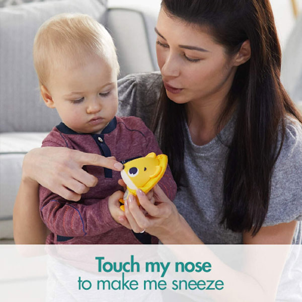 Buddy to bounce or shake them and hear the rewarding wobbling and boing sounds, tickle their tummies to make their hearts glow, press their little noses to make them sneeze, Achoo!.., feed them a carrot, apple or cheese to hear them nibble and put them to bed for sweet, amusing snoring.