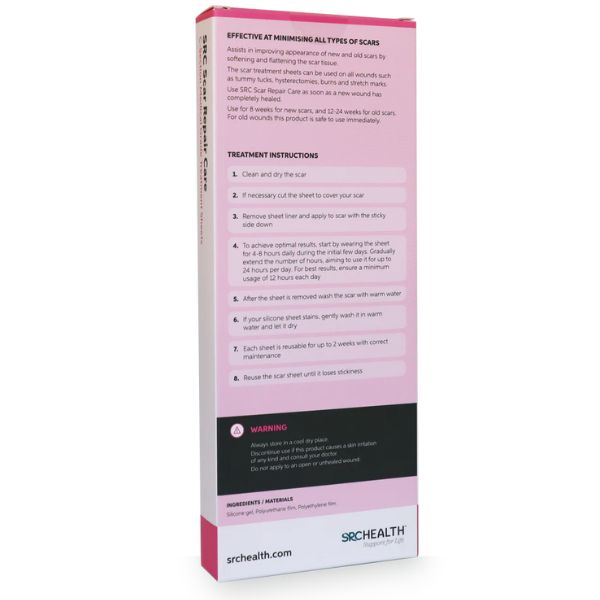 Upgrade your scar care game with SRC Scar Repair Care. Offering not only sizable, but multiple sheets, each measuring an impressive 20cm x 5cm, providing unmatched coverage to effectively fade all types of scars. Whether you've had a C-Section, tummy tuck, hysterectomy, or are dealing with scars from burns or stretch marks, SRC is your ideal companion. Say goodbye to ordinary solutions and embrace the future of scar treatment with SRC today!